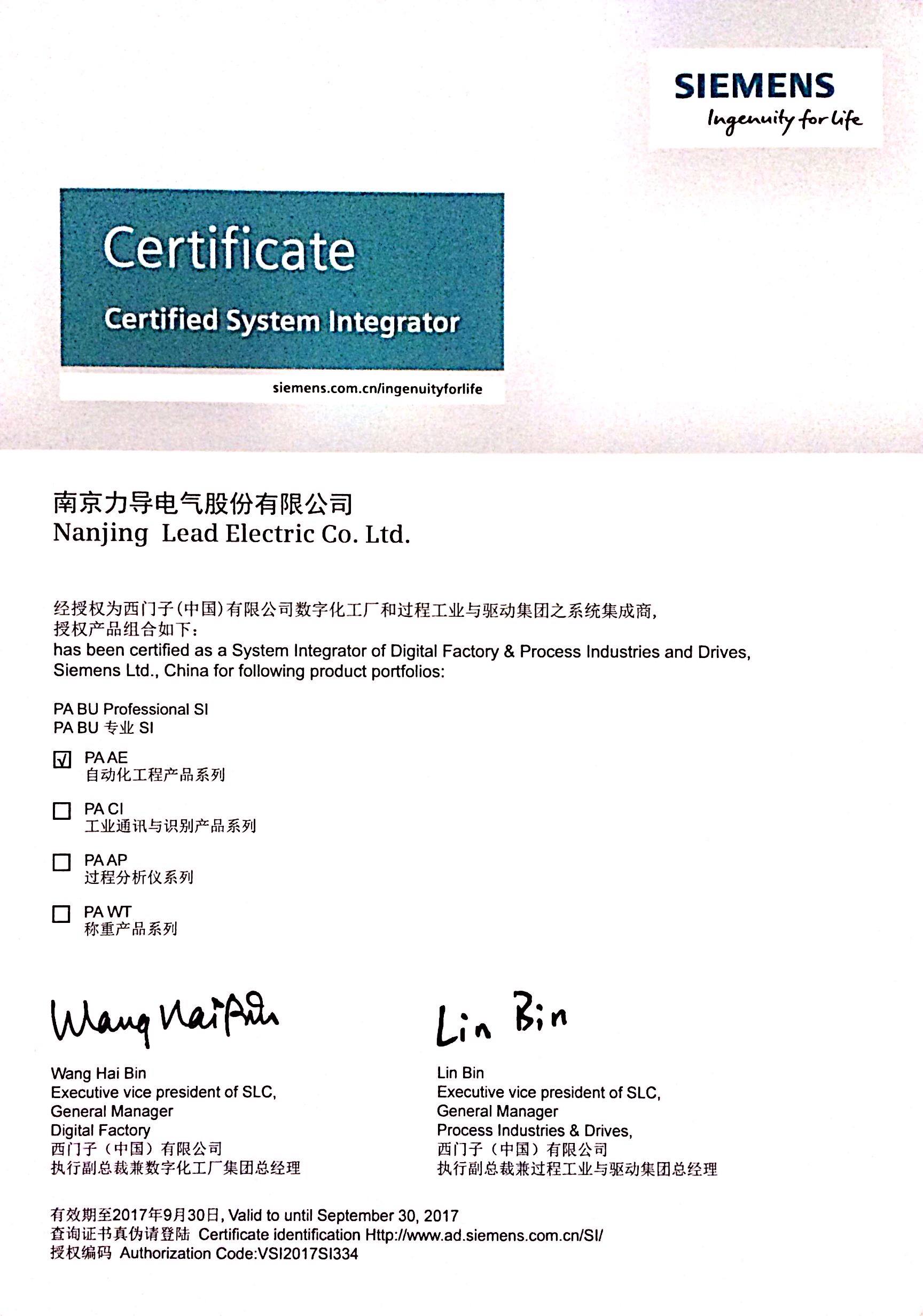 西門子系統(tǒng)集成商授權(quán)